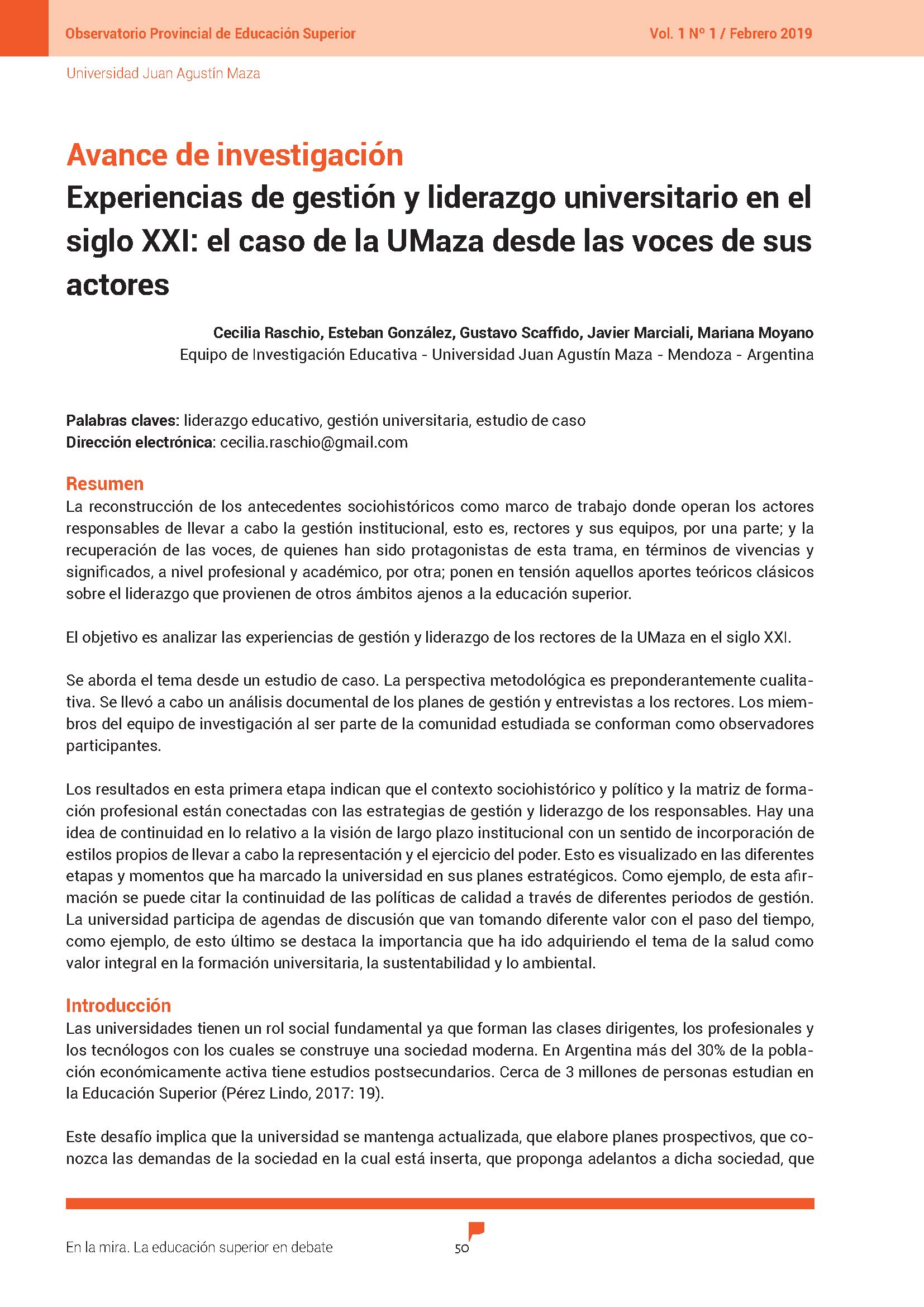 González, E. R., Raschio, C., Marciali, J., Scaffido, G., & Moyano, M. (2019). Experiencias de gestión y liderazgo universitario en el siglo XXI: el caso de la UMaza desde las voces de sus actores. Revista En La Mira. La educación Superior En Debate, 1(1), 50–62. Recuperado a partir de https://www.repositorio.umaza.edu.ar/enlm/article/view/185