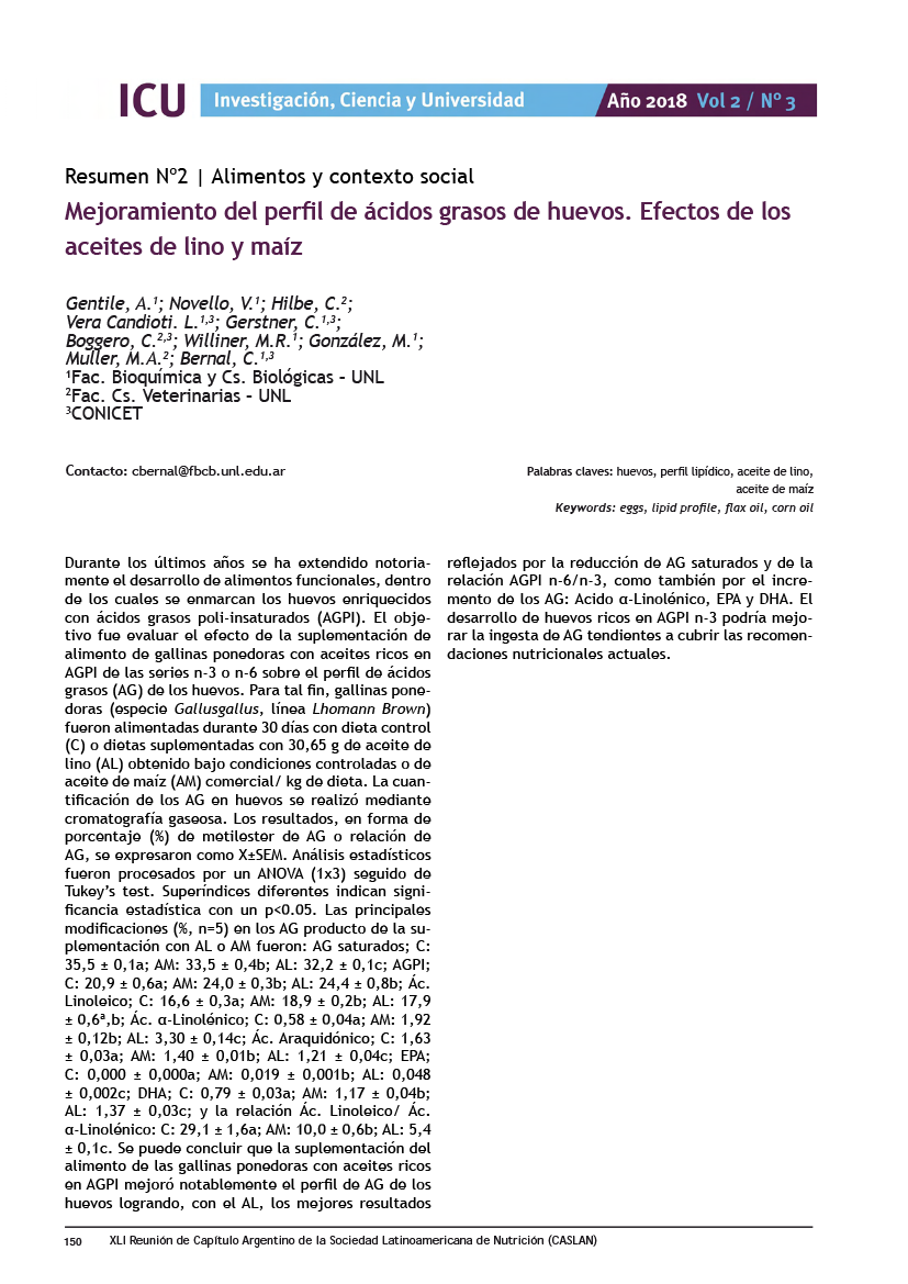 Mejoramiento del perfil de ácidos grasos de huevos. Efectos de los aceites de lino y maíz