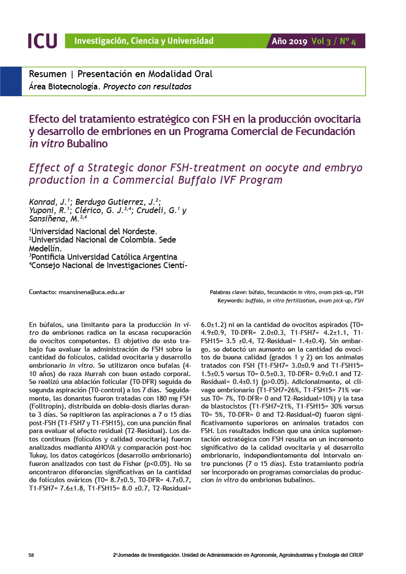 Efecto del tratamiento estratégico con FSH en la producción ovocitaria y desarrollo de embriones en un Programa Comercial de Fecundación in vitro Bubalino