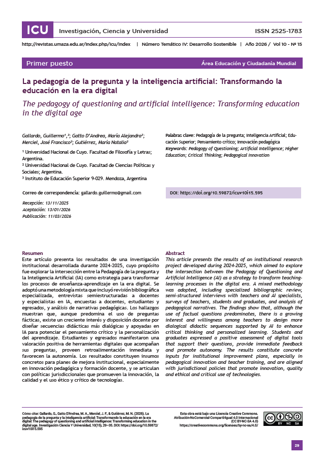 ICU es la Revista Científica de la Universidad Juan Agustín Maza, de carácter multi e interdisciplinario, de Acceso Abierto y sin costos de publicación ni lectura.