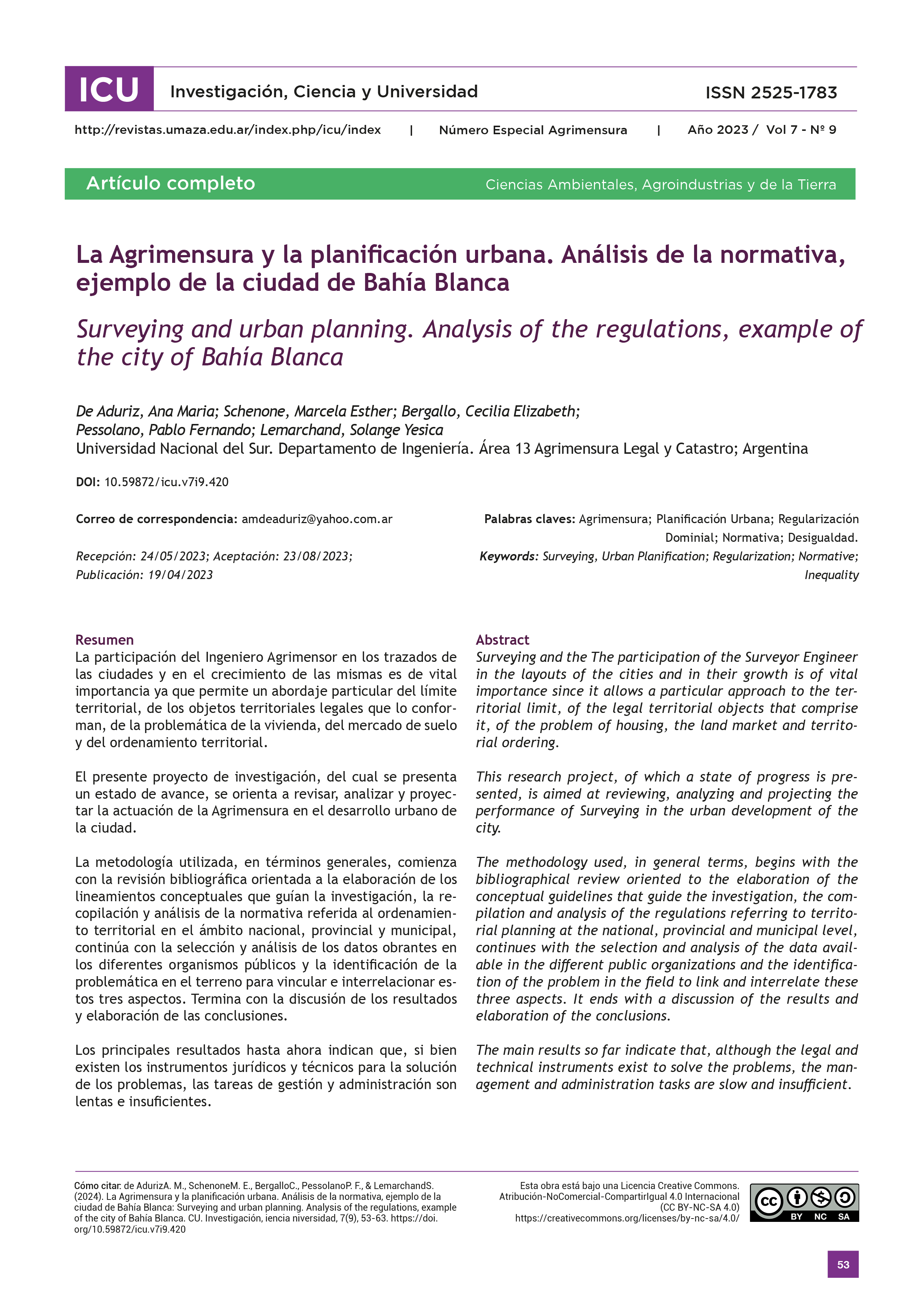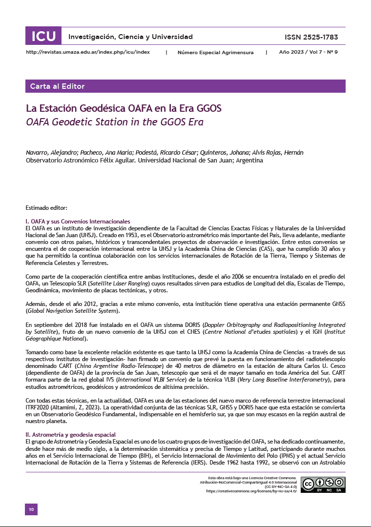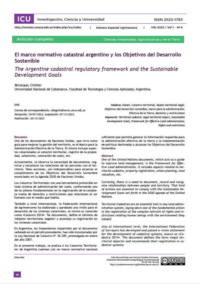 Vol. 7 Núm. 9 (2023): Nº9 - 1er. Número Especial: Agrimensura - Revista ICU. Investigación, Ciencia y Universidad (ICU)
