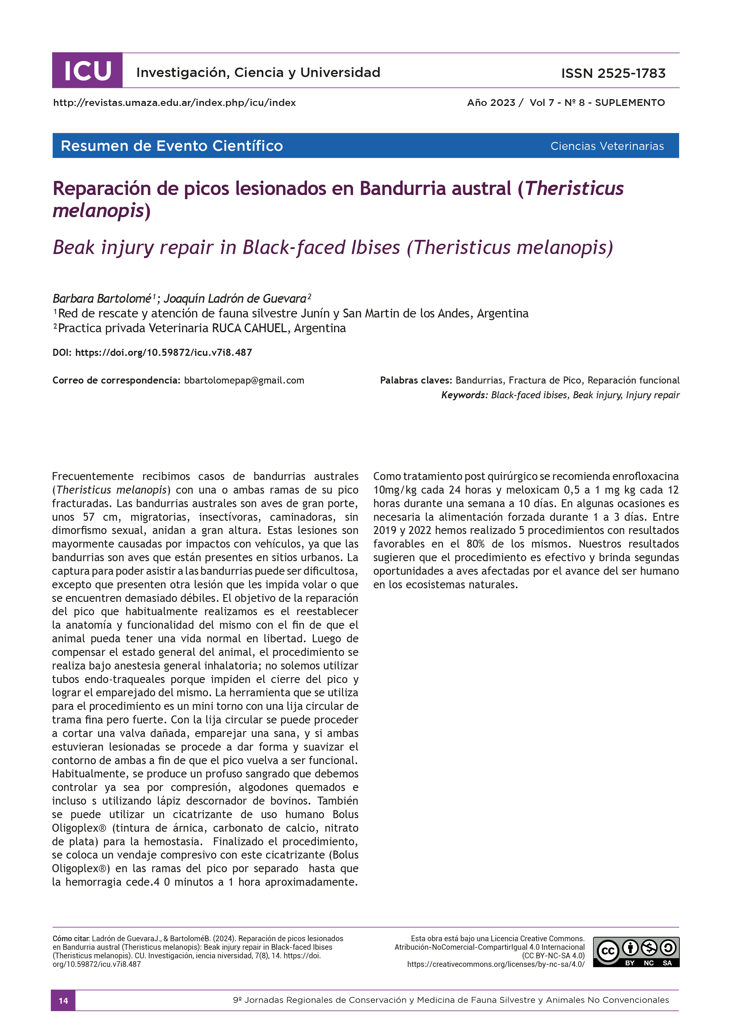Vol. 7 Núm. 8 (2023): Nº8 - Suplemento Resúmenes de Eventos Científicos - Revista ICU. Investigación, Ciencia y Universidad (ICU)