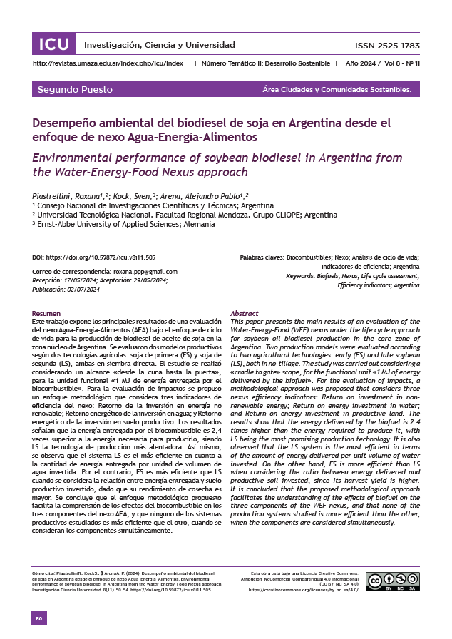 Vol. 8 Núm. 11 (2024): Nº11 - 2do Número Temático: Desarrollo Sostenible - Revista ICU. Investigación, Ciencia y Universidad (ICU)