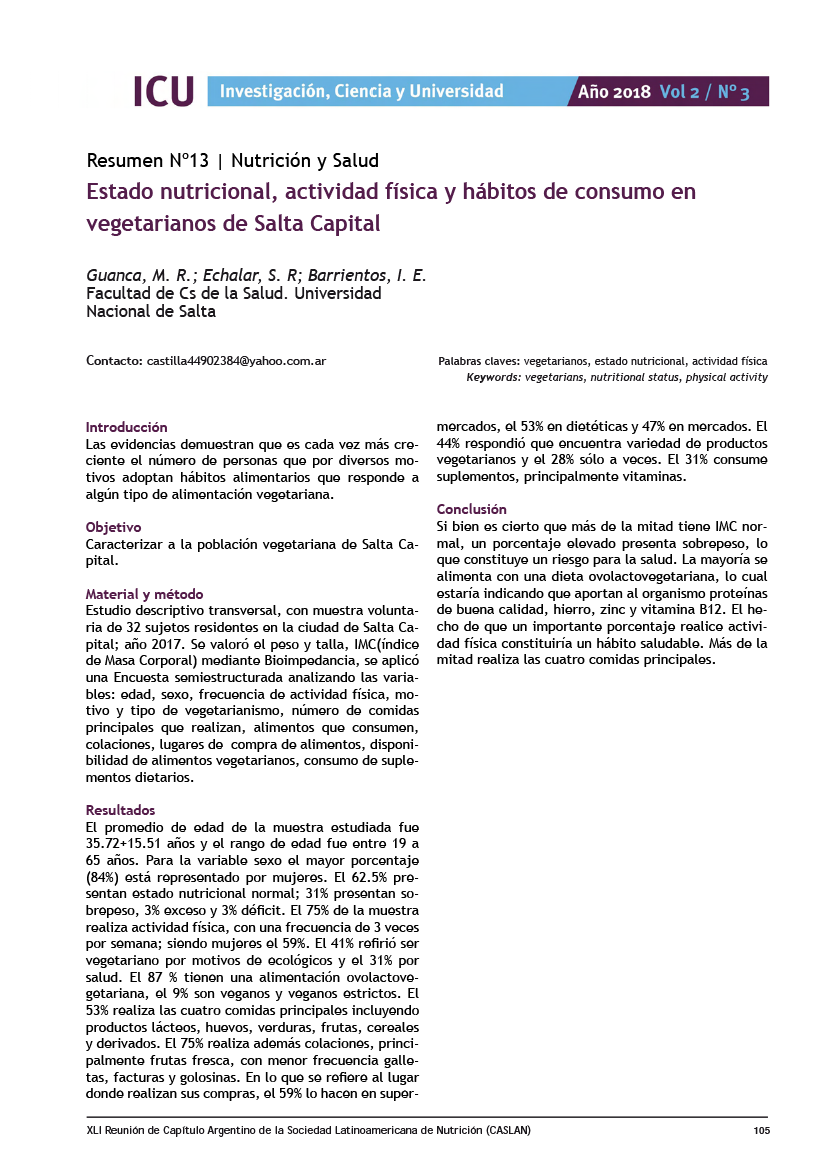 Estado nutricional, actividad física y hábitos de consumo en vegetarianos de Salta Capital